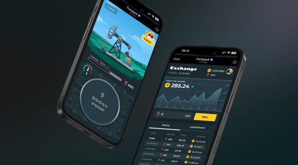 Pump-to-earn game where you earn in-game points by operating a virtual oil pump
